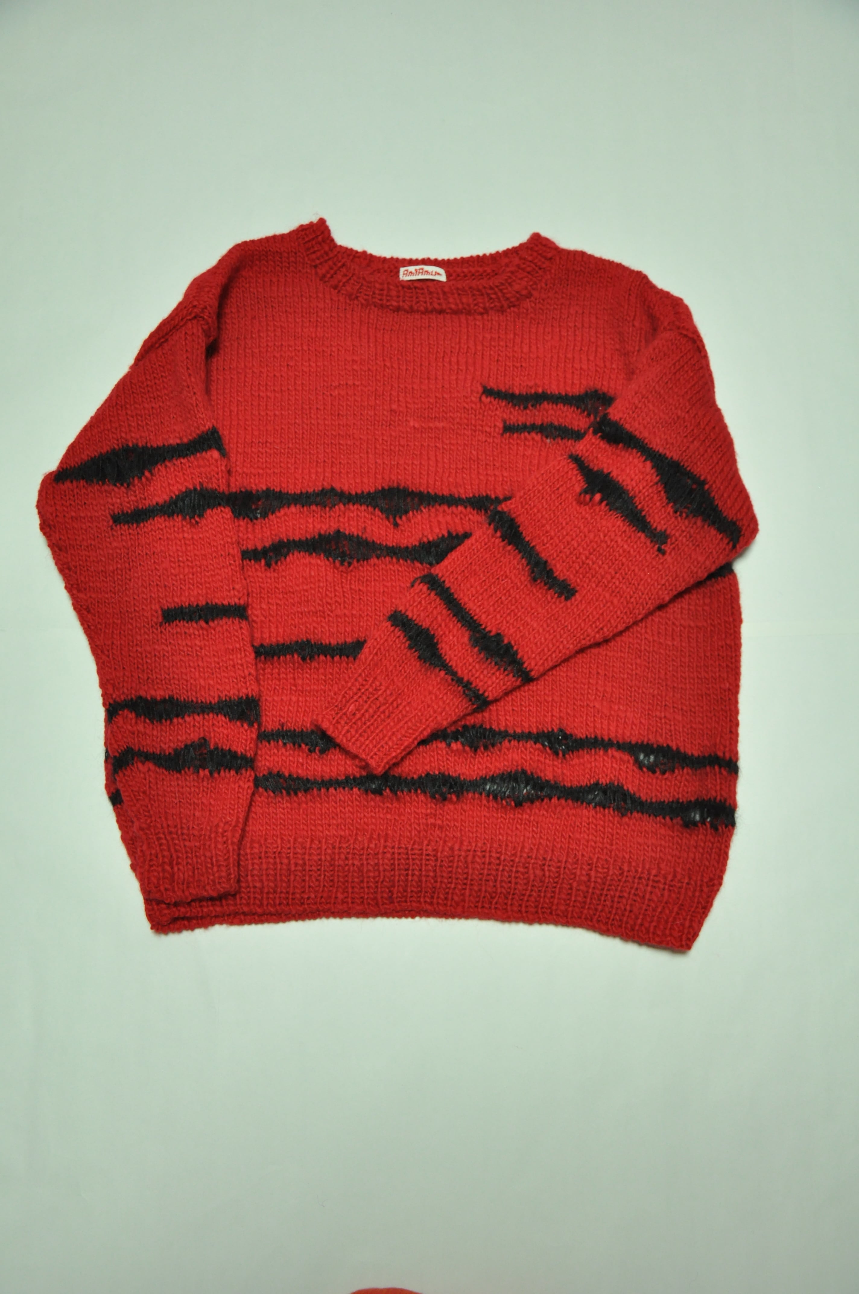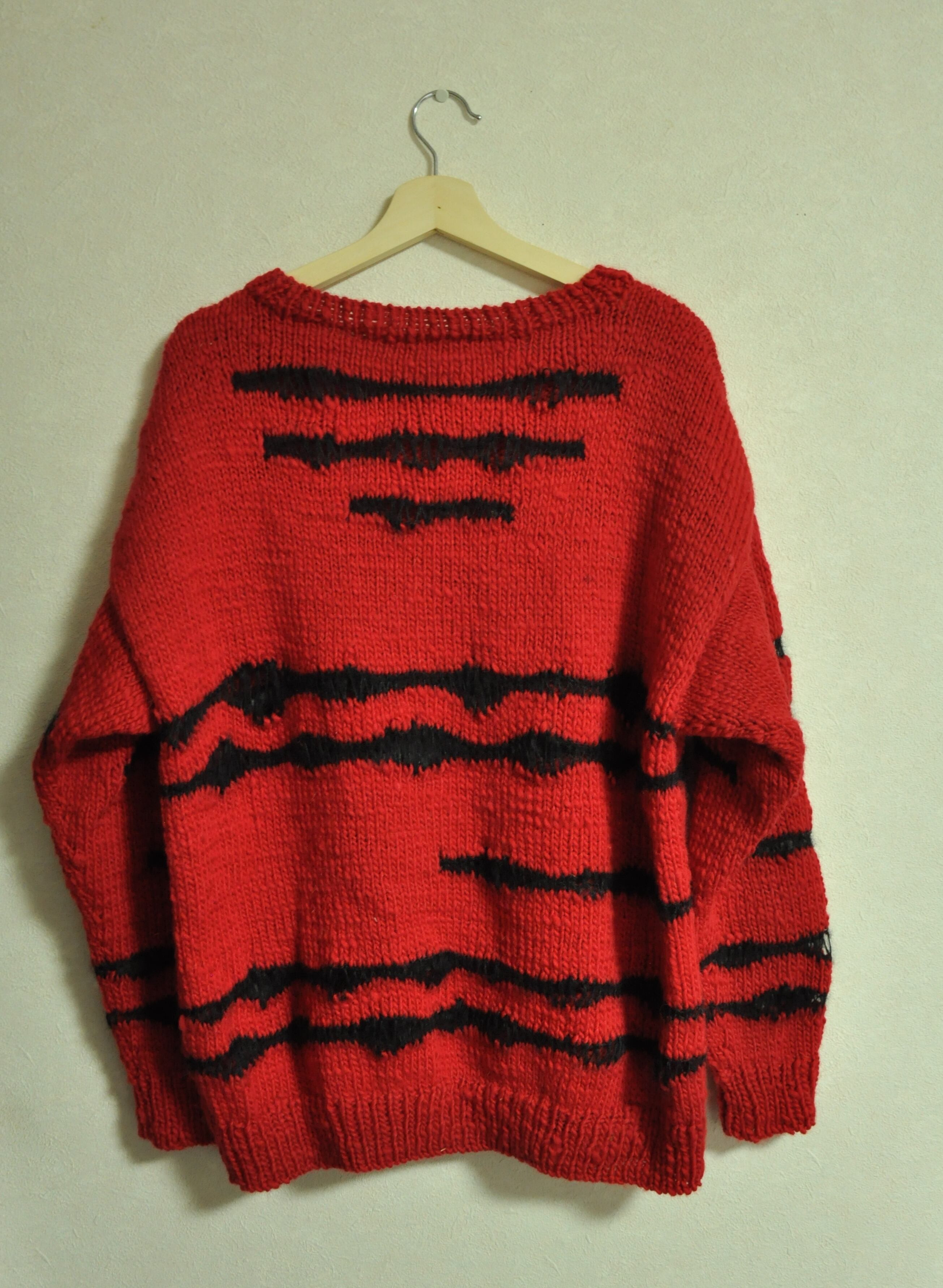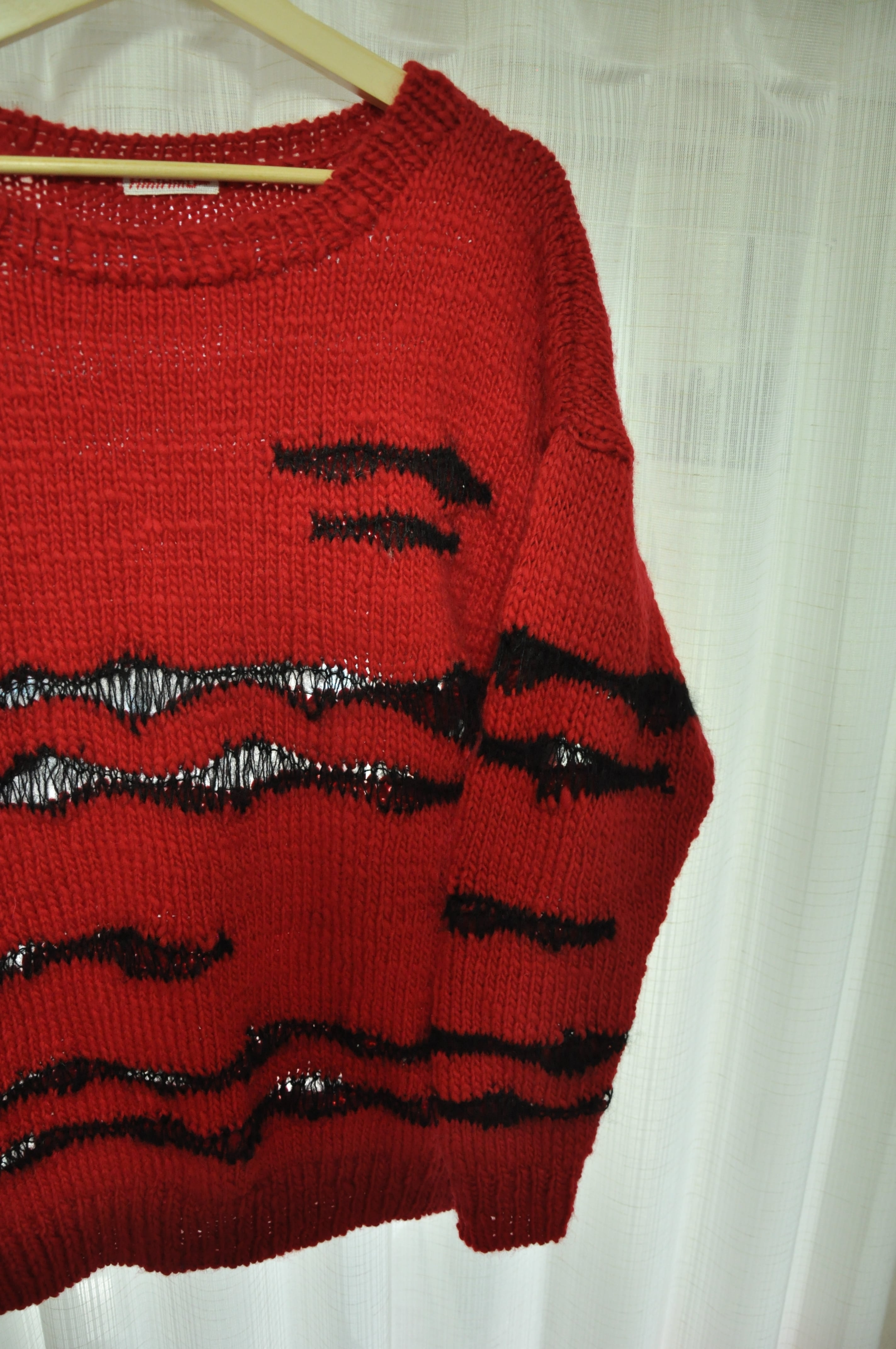 【WAVY LINE】赤 オーバーサイズのプルオーバー セーター ボーダーニット 手編み 赤