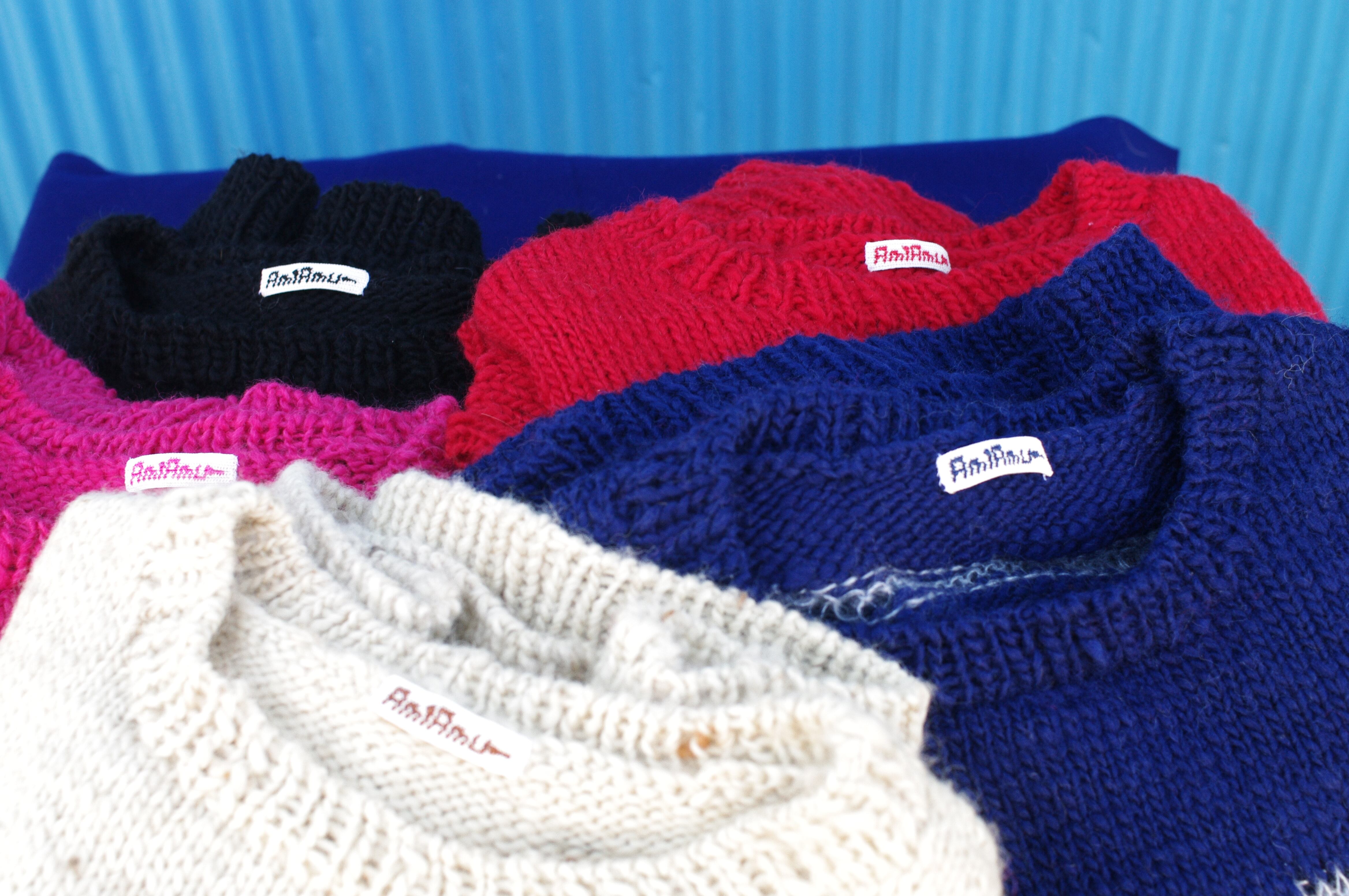 ブランドネームタグはそれぞれのお色に合わせて手編みで編んでおります。