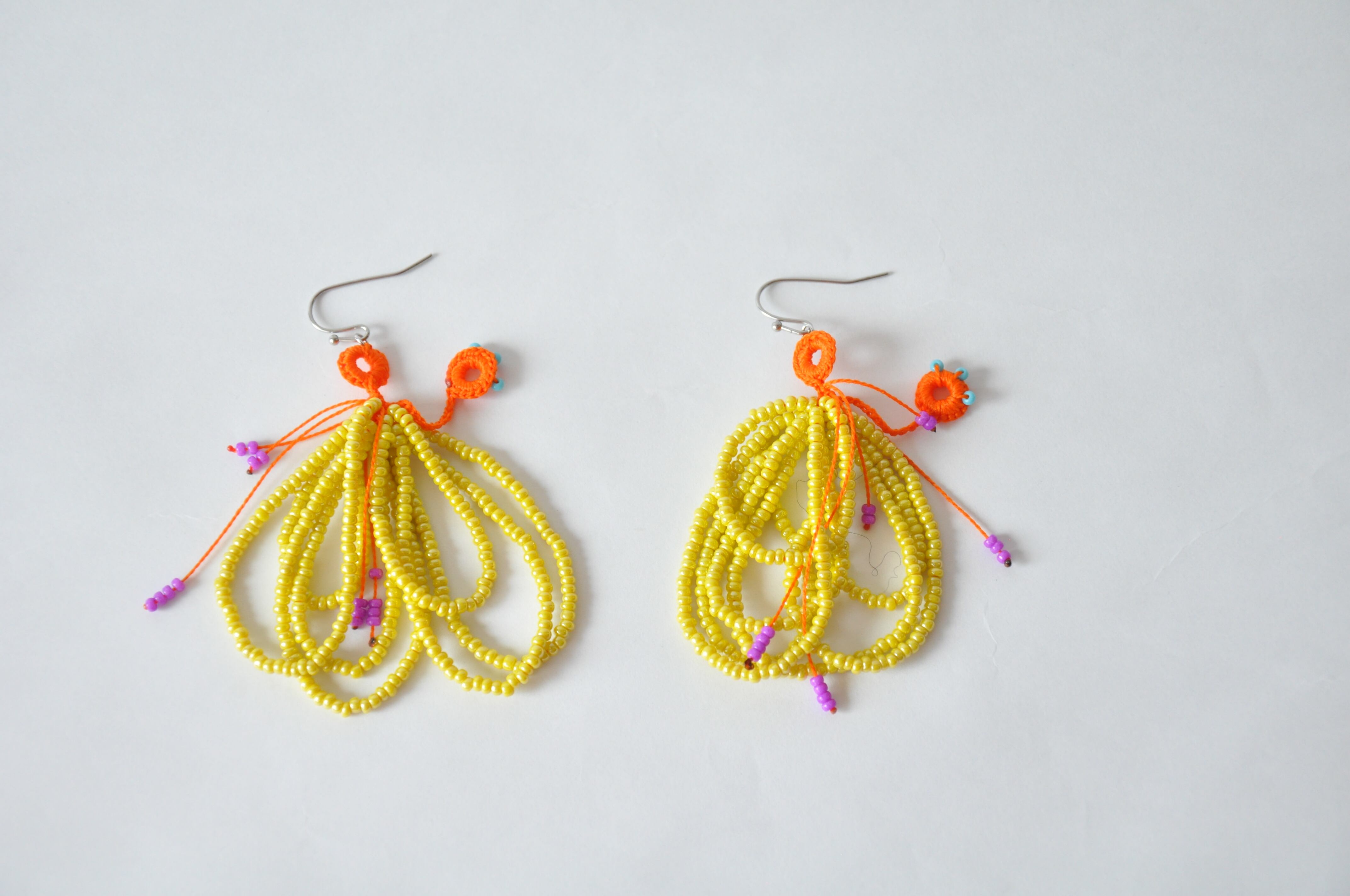オレンジのオヤ糸とシードビーズは元気なカラー