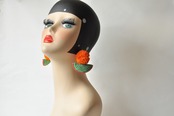 【PONPON】オレンジ 大ぶりピアス オヤピアス