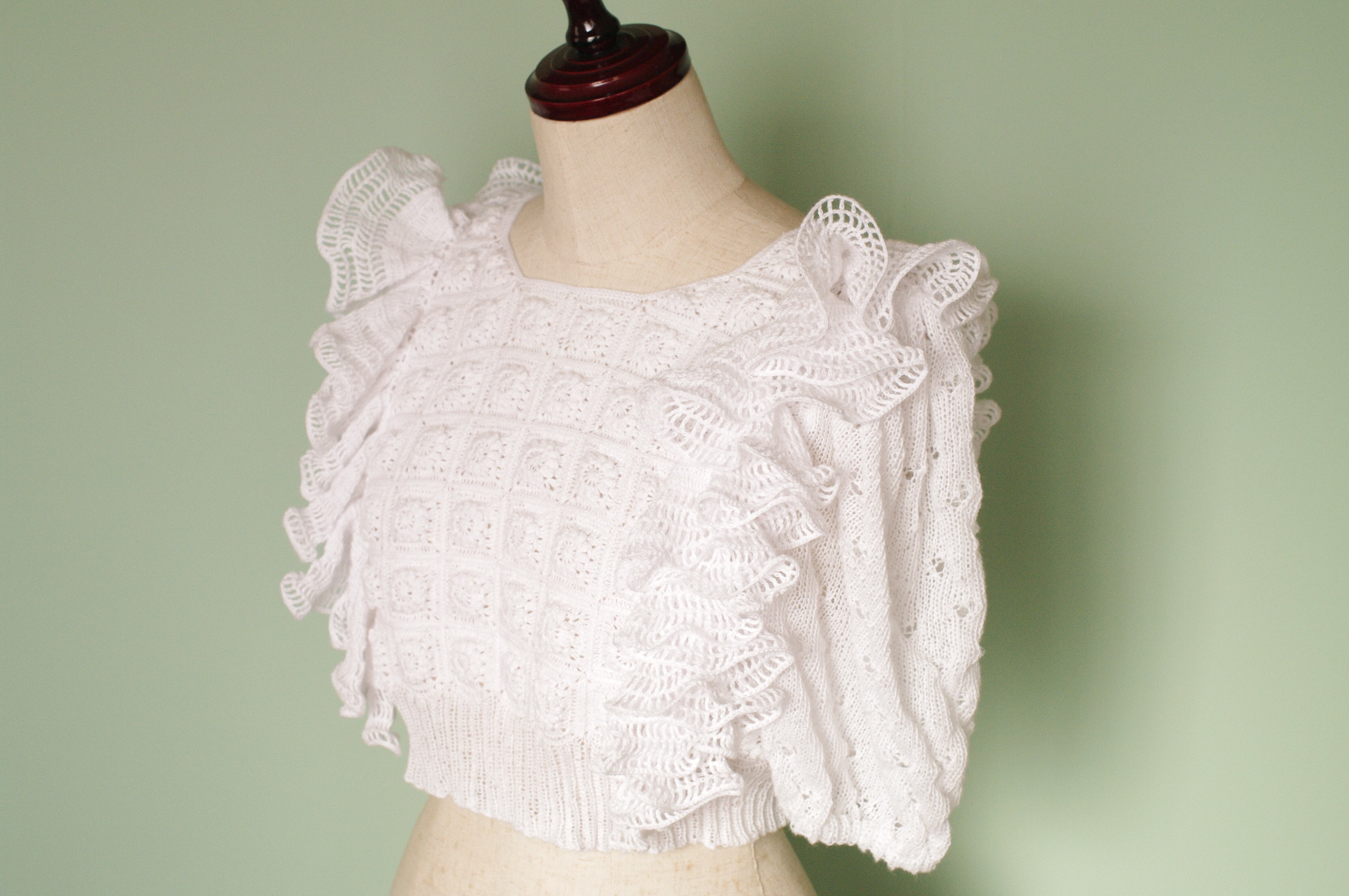 大きなフリルは立体感を出す為に外側に形状保持のプラスチック針金を編み包みました。